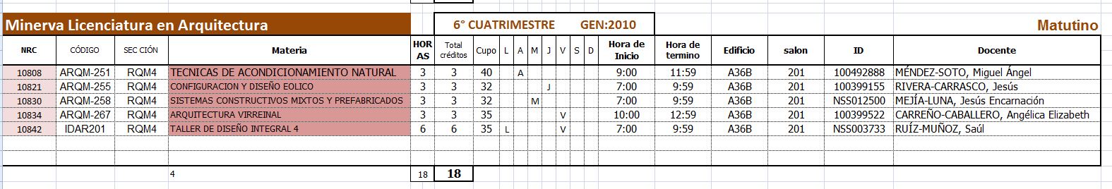 Jóvenes de arquitectura, les publico los NRCs de las materias que se